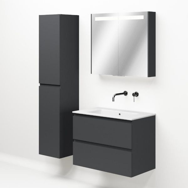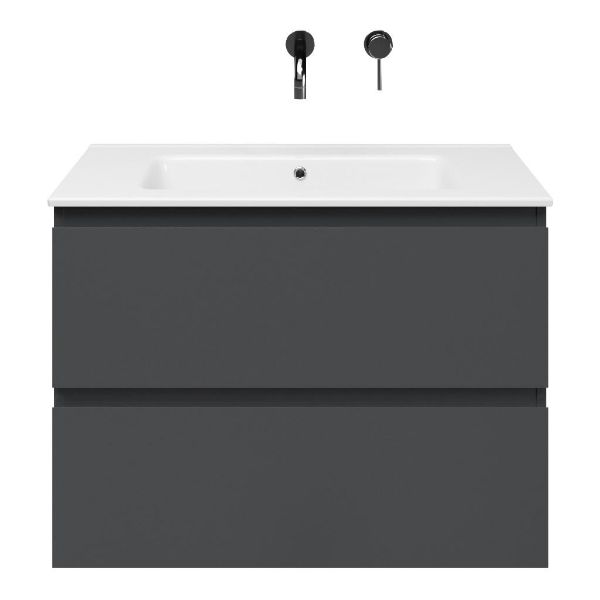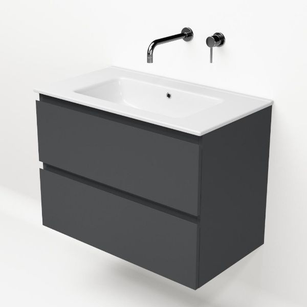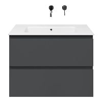 | | Bellanti Gisella/Etna badmeubel 80x46 2 softclose laden antraciet mat greeploos keramische wastafel wit zonder kraangaten |