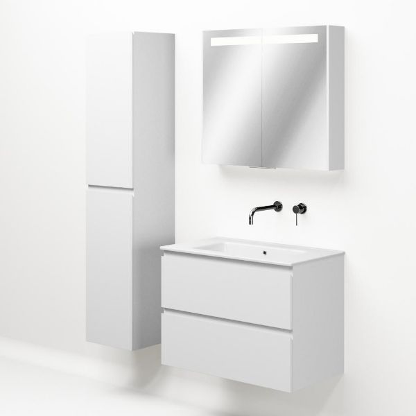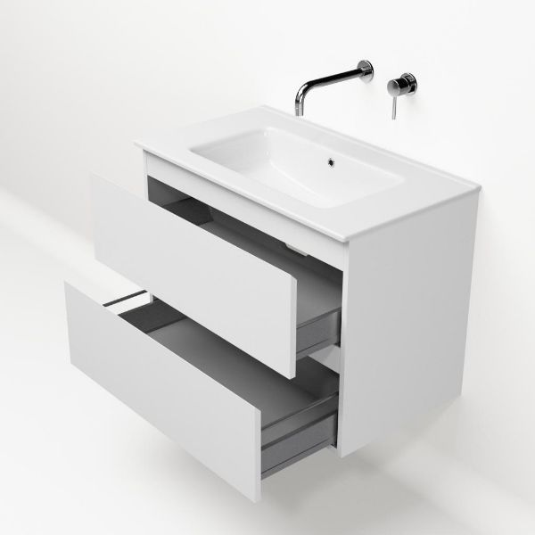 | | Bellanti Gisella/Etna badmeubel 80x46 2 softclose laden wit mat greeploos keramische wastafel wit zonder kraangaten |