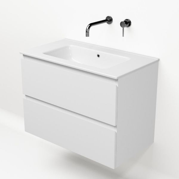 | Bellanti Gisella/Etna badmeubel 80x46 2 softclose laden wit mat greeploos keramische wastafel wit zonder kraangaten |
