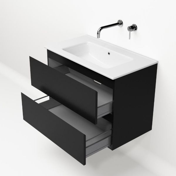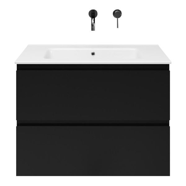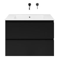 | | Bellanti Gisella/Etna badmeubel 80x46 2 softclose laden zwart mat greeploos keramische wastafel wit zonder kraangaten |