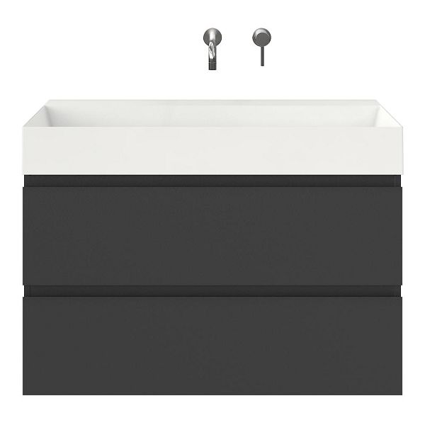 | | Bellanti Gisella/Azzurra badmeubel 100x46 2 softclose laden antraciet mat greeploos keramische wastafel wit glans zonder kraangaten |