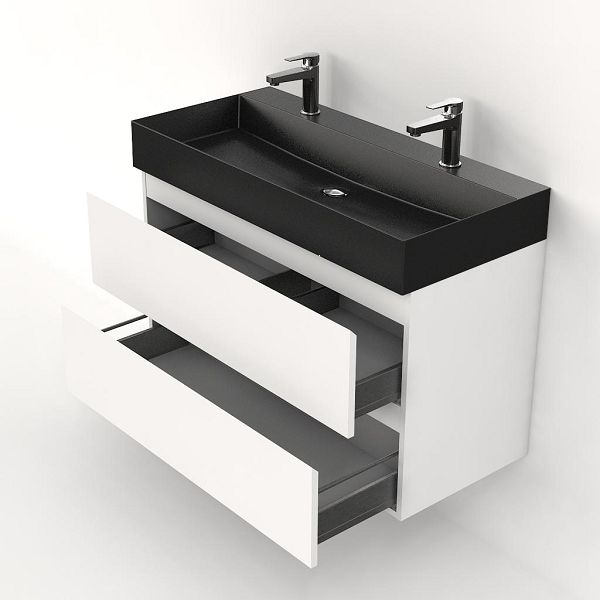 | Bellanti Gisella/Azzurra badmeubel 100x46 2 softclose laden wit mat greeploos keramische wastafel antraciet mat met 2 kraangaten |