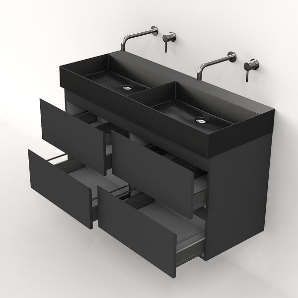 | Bellanti Gisella/Azzurra badmeubel 120x46 4 softclose laden antraciet mat greeploos keramische wastafel dubbel antraciet mat zonder kraangaten |