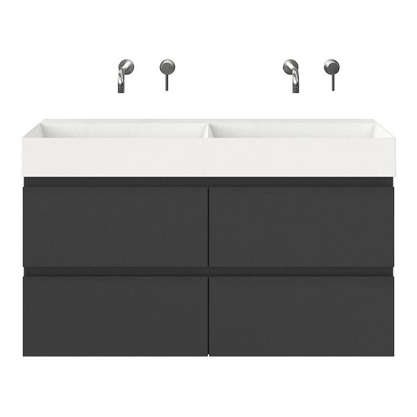 | | Bellanti Gisella/Azzurra badmeubel 120x46 4 softclose laden antraciet mat greeploos keramische wastafel dubbel wit mat zonder kraangaten |