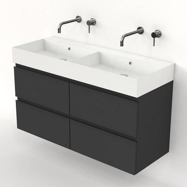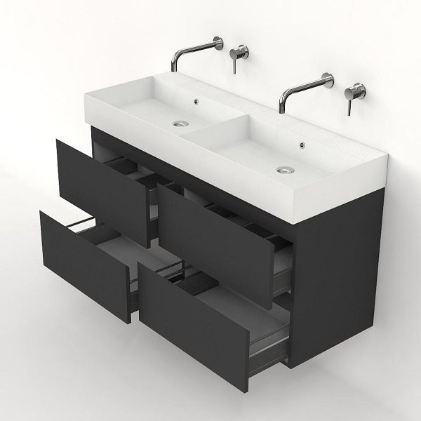 | | Bellanti Gisella/Azzurra badmeubel 120x46 4 softclose laden antraciet mat greeploos keramische wastafel dubbel wit mat zonder kraangaten |