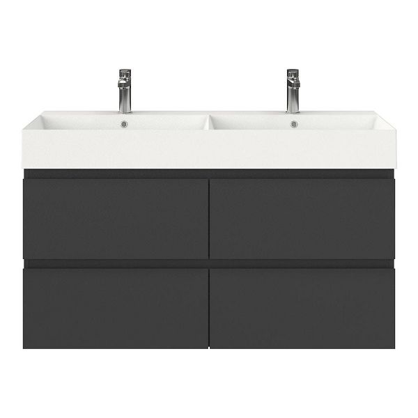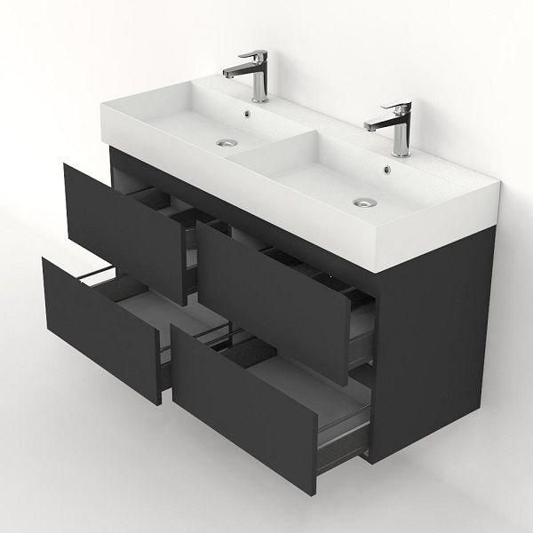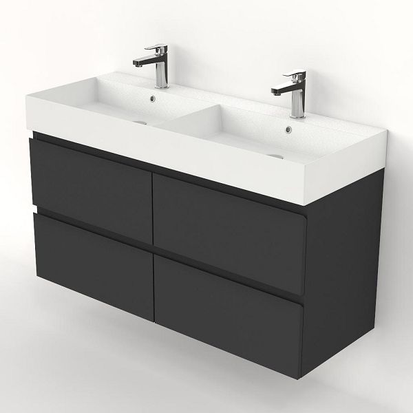 | Bellanti Gisella/Azzurra badmeubel 120x46 4 softclose laden antraciet mat greeploos keramische wastafel dubbel wit mat met 2 kraangaten |