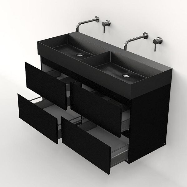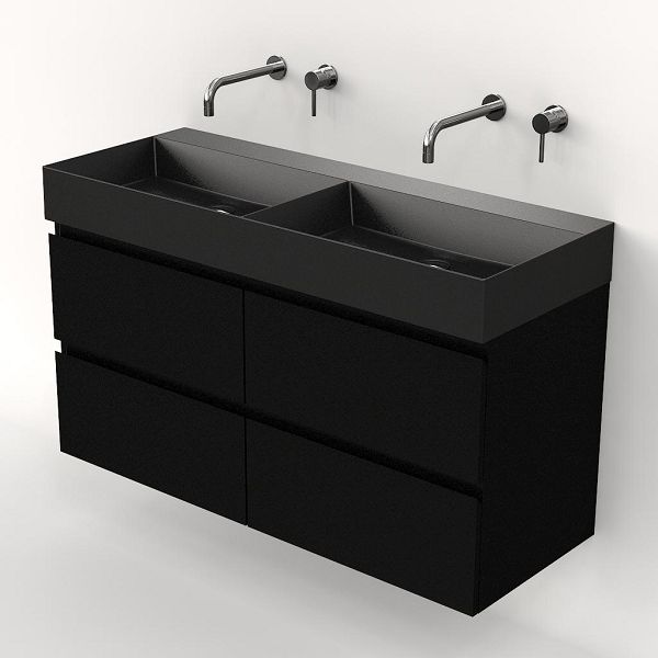 | Bellanti Gisella/Azzurra badmeubel 120x46 4 softclose laden zwart mat greeploos keramische wastafel dubbel antraciet mat zonder kraangaten |