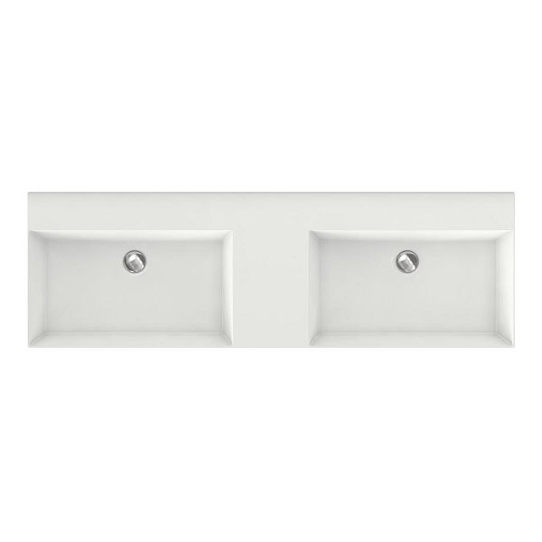 Greeploos badkamermeubel in de kleur wit hoogglans is 140 cm breed. De wastafel is vervaardig in keramiek en heeft de kleur wit keramiek. Dit badkamermeubel met deze wastafel is leverbaar tussen de 60 cm t/m 160 cm