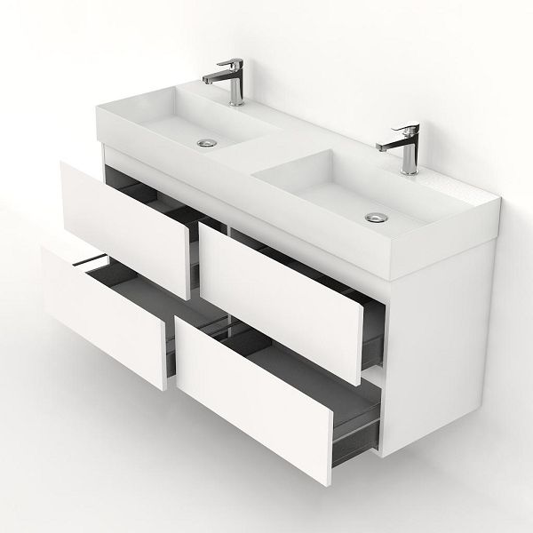 | | Bellanti Gisella/Azzurra badmeubel 140x46 4 softclose laden wit mat greeploos keramische wastafel dubbel wit glans met 2 kraangaten |