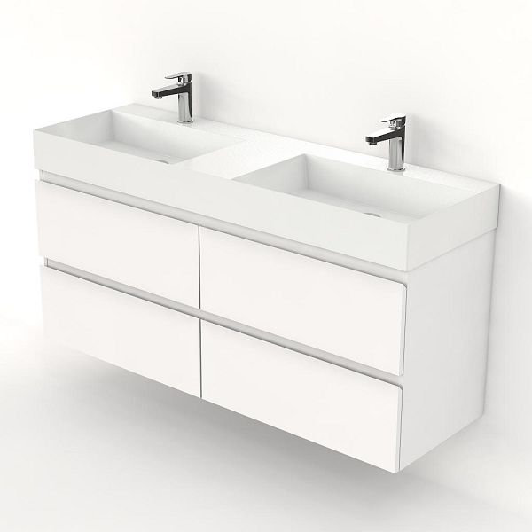 | Bellanti Gisella/Azzurra badmeubel 140x46 4 softclose laden wit mat greeploos keramische wastafel dubbel wit glans met 2 kraangaten |