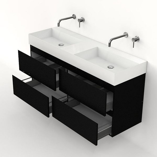 | Bellanti Gisella/Azzurra badmeubel 140x46 4 softclose laden zwart mat greeploos keramische wastafel dubbel wit glans zonder kraangaten |