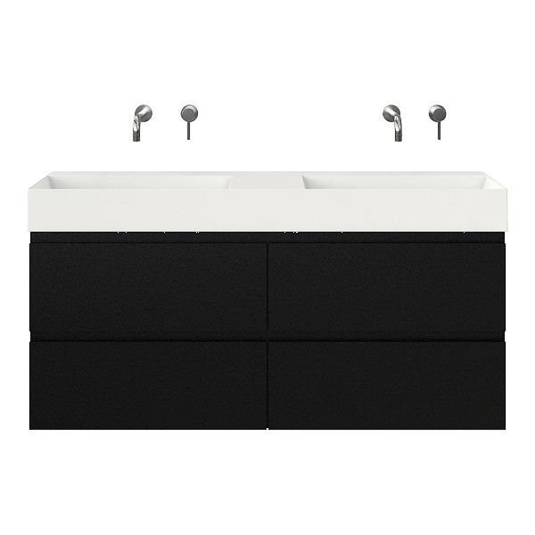 | | Bellanti Gisella/Azzurra badmeubel 140x46 4 softclose laden zwart mat greeploos keramische wastafel dubbel wit glans zonder kraangaten |