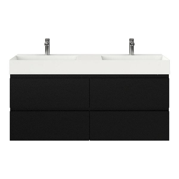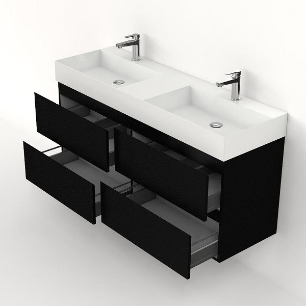 | | Bellanti Gisella/Azzurra badmeubel 140x46 4 softclose laden zwart mat greeploos keramische wastafel dubbel wit glans met 2 kraangaten |