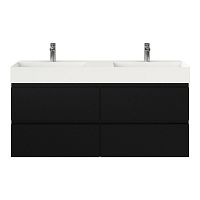 | Bellanti Gisella/Azzurra badmeubel 140x46 4 softclose laden zwart mat greeploos keramische wastafel dubbel wit glans met 2 kraangaten |