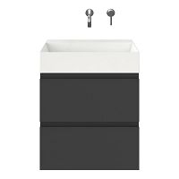 Greeploos badkamermeubel in de kleur antraciet mat is 60 cm breed. De wastafel is vervaardig in keramiek en heeft de kleur wit keramiek. Dit badkamermeubel met deze wastafel is leverbaar tussen de 60 cm t/m 160 cm