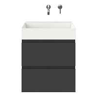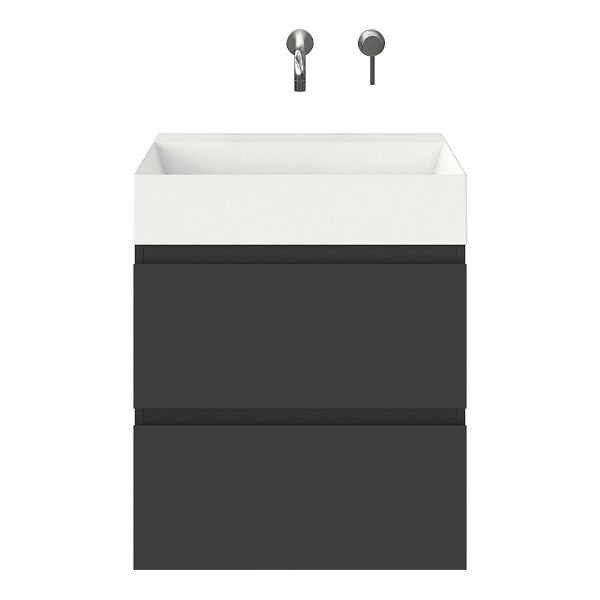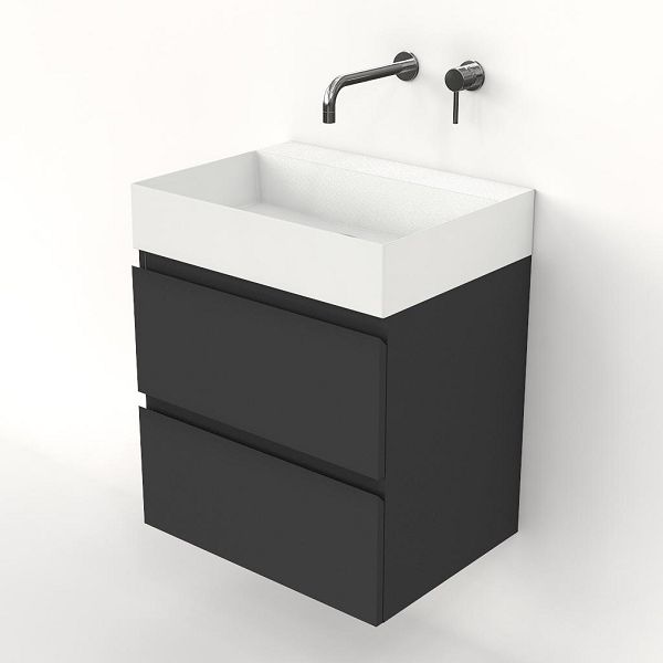 | | Bellanti Gisella/Azzurra badmeubel 60x46 2 softclose laden antraciet mat greeploos keramische wastafel wit mat zonder kraangaten |