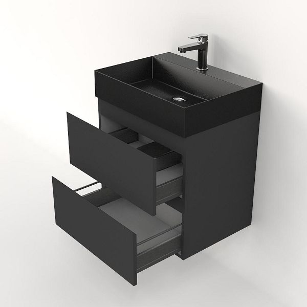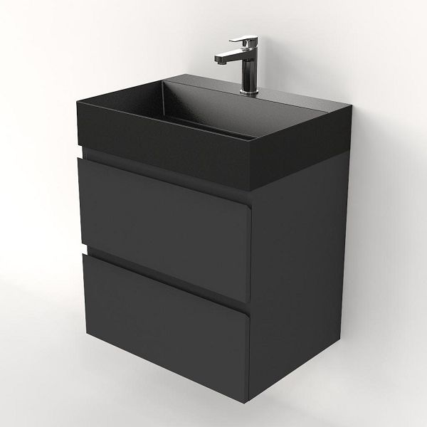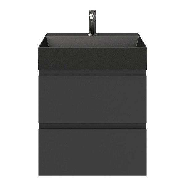 | Bellanti Gisella/Azzurra badmeubel 60x46 2 softclose laden antraciet mat greeploos keramische wastafel antraciet mat met 1 kraangat |