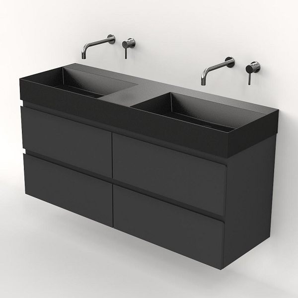 | | Bellanti Gisella/Azzurra badmeubel 140x46 4 softclose laden antraciet mat greeploos keramische wastafel dubbel antraciet mat zonder kraangaten |