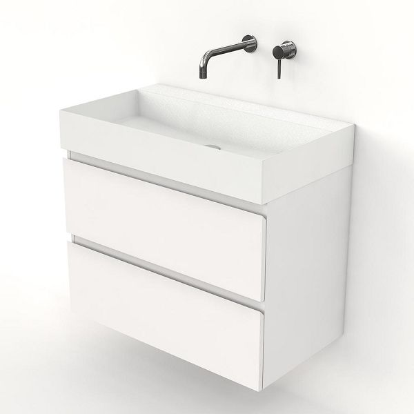 | | Bellanti Gisella/Azzurra badmeubel 80x46 2 softclose laden wit hoogglans greeploos keramische wastafel wit mat zonder kraangaten |