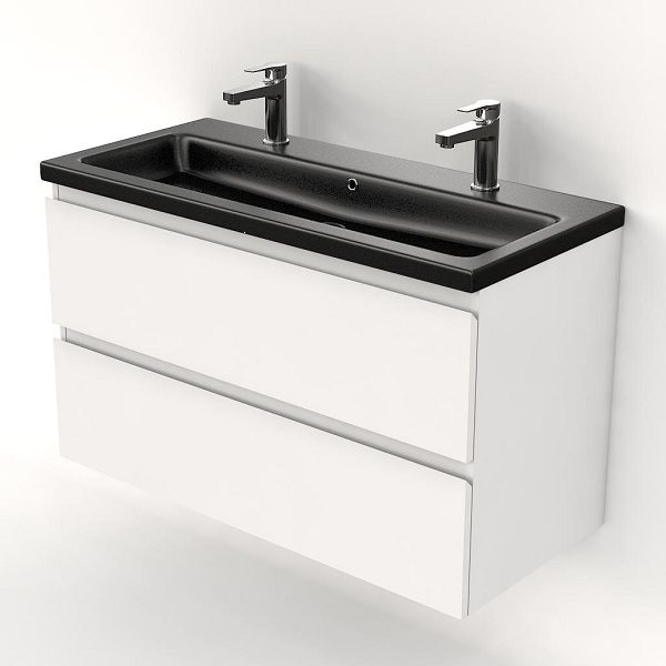 | Bellanti Gisella/Amelia badmeubel 100x46 2 softclose laden wit hoogglans greeploos keramische wastafel zwart mat met 2 kraangaten |