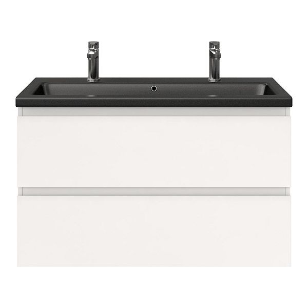 | | Bellanti Gisella/Amelia badmeubel 100x46 2 softclose laden wit hoogglans greeploos keramische wastafel zwart mat met 2 kraangaten |