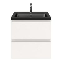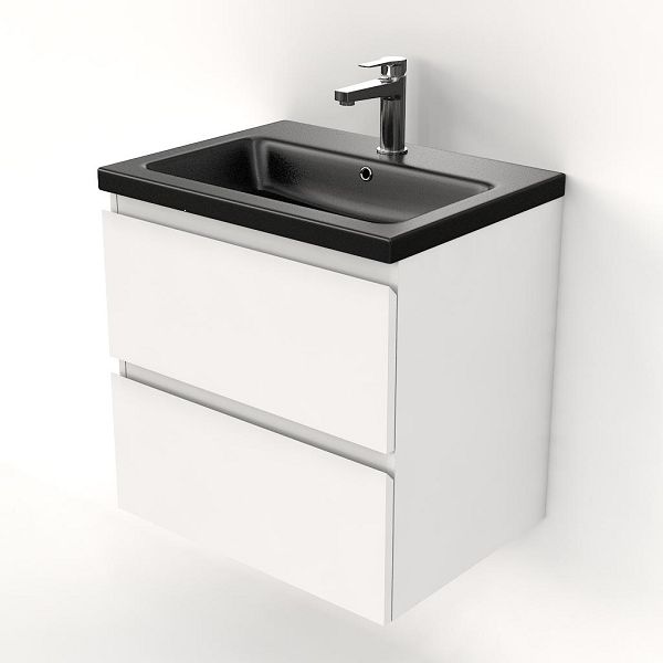 | Bellanti Gisella/Amelia badmeubel 60x46 2 softclose laden wit hoogglans greeploos keramische wastafel zwart mat met 1 kraangat |