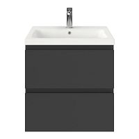 | | Bellanti Gisella/Amelia badmeubel 60x46 2 softclose laden antraciet mat greeploos keramische wastafel wit mat met 1 kraangat |