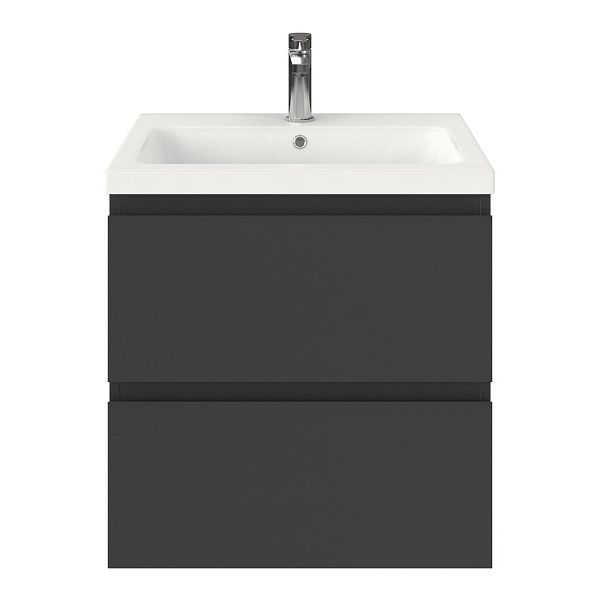 | Bellanti Gisella/Amelia badmeubel 60x46 2 softclose laden antraciet mat greeploos keramische wastafel wit mat met 1 kraangat |