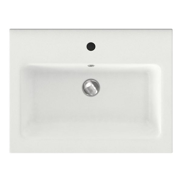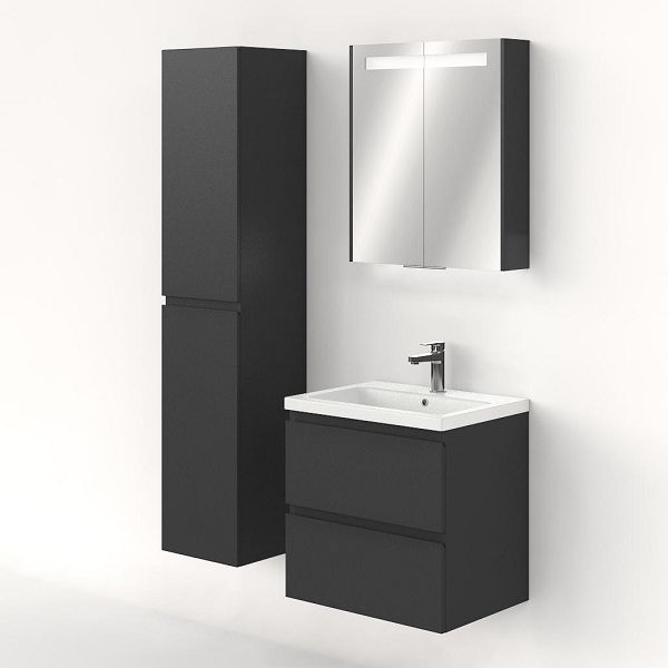 Greeploos badkamermeubel in de kleur antraciet mat is 60 cm breed. De wastafel is vervaardig in keramiek en heeft de kleur wit mat keramiek. Dit badkamermeubel met deze wastafel is leverbaar tussen de 60 cm t/m 120 cm