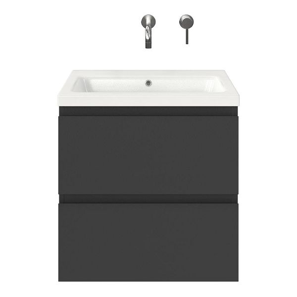| | Bellanti Gisella/Amelia badmeubel 60x46 2 softclose laden antraciet mat greeploos keramische wastafel wit glans zonder kraangaten |