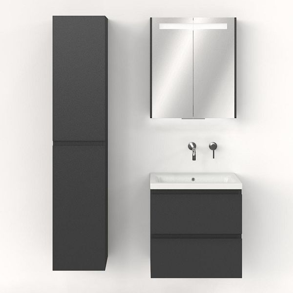 Greeploos badkamermeubel in de kleur antraciet mat is 60 cm breed. De wastafel is vervaardig in keramiek en heeft de kleur wit keramiek. Dit badkamermeubel met deze wastafel is leverbaar tussen de 60 cm t/m 120 cm