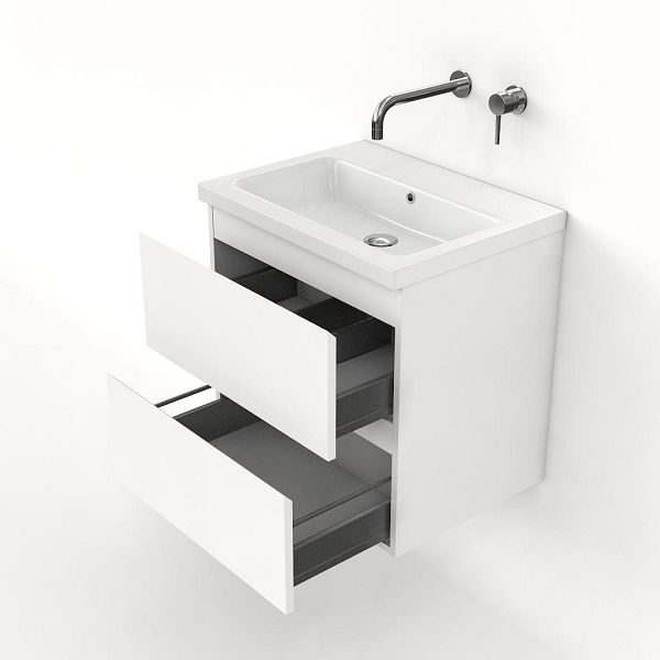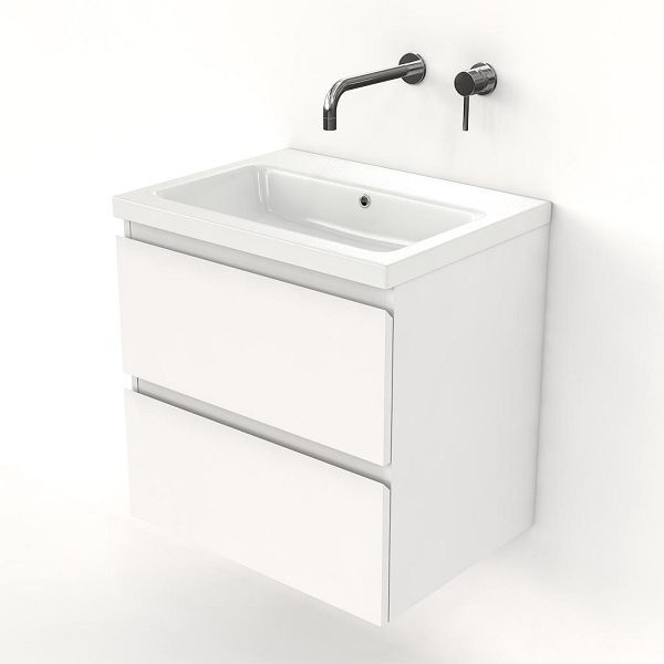 | | Bellanti Gisella/Amelia badmeubel 60x46 2 softclose laden wit mat greeploos keramische wastafel wit glans zonder kraangaten |