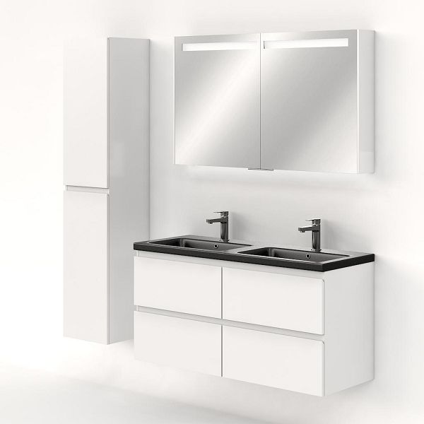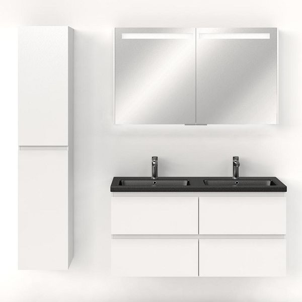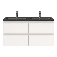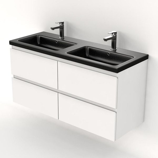 | Bellanti Gisella/Amelia badmeubel 120x46 4 softclose laden wit hoogglans greeploos keramische wastafel dubbel zwart mat met 2 kraangaten |