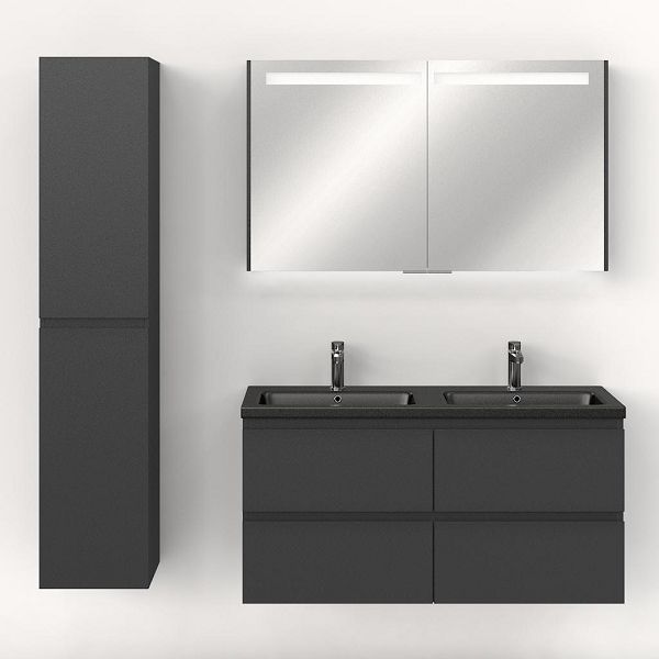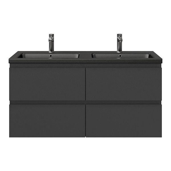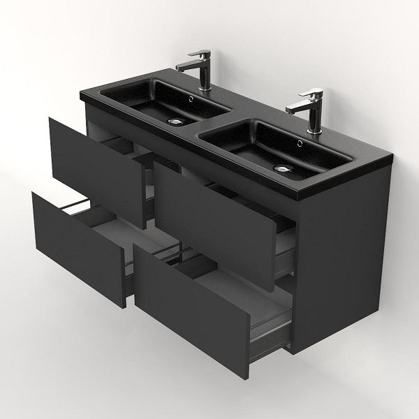 | Bellanti Gisella/Amelia badmeubel 120x46 4 softclose laden antraciet mat greeploos keramische wastafel dubbel zwart mat met 2 kraangaten |