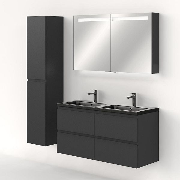 | | Bellanti Gisella/Amelia badmeubel 120x46 4 softclose laden antraciet mat greeploos keramische wastafel dubbel zwart mat met 2 kraangaten |