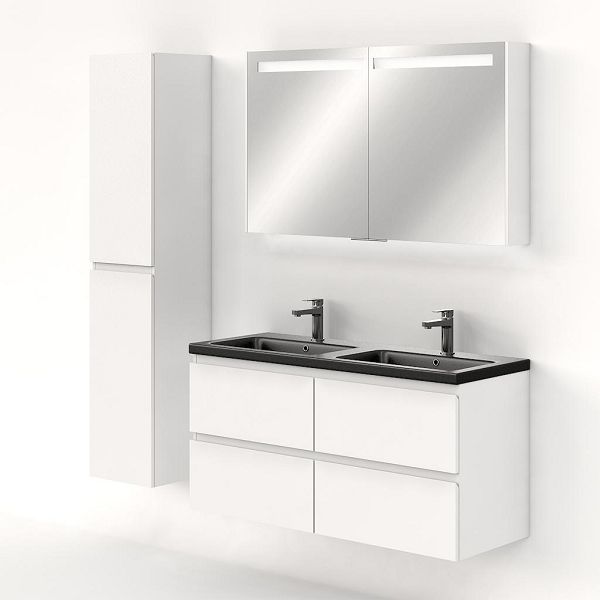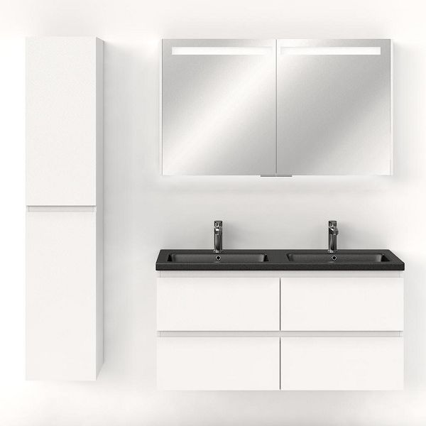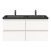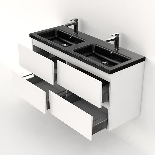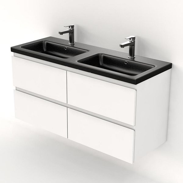 | Bellanti Gisella/Amelia badmeubel 120x46 4 softclose laden wit mat greeploos keramische wastafel dubbel zwart mat met 2 kraangaten |