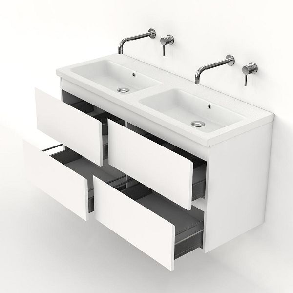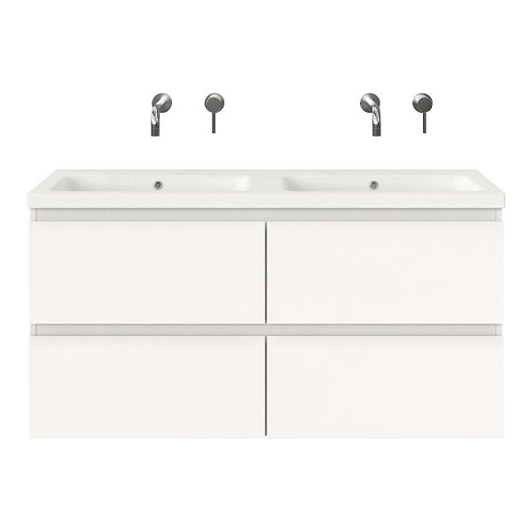 | | Bellanti Gisella/Amelia badmeubel 120x46 4 softclose laden wit mat greeploos keramische wastafel dubbel wit mat zonder kraangaten |