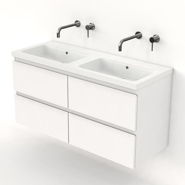 | Bellanti Gisella/Amelia badmeubel 120x46 4 softclose laden wit mat greeploos keramische wastafel dubbel wit mat zonder kraangaten |