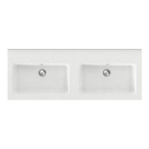 Greeploos badkamermeubel in de kleur wit mat is 120 cm breed. De wastafel is vervaardig in keramiek en heeft de kleur wit mat keramiek. Dit badkamermeubel met deze wastafel is leverbaar tussen de 60 cm t/m 120 cm