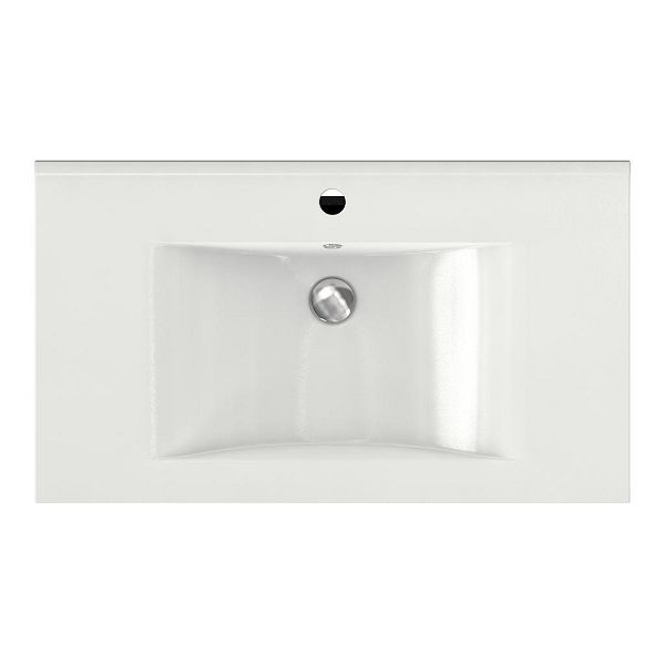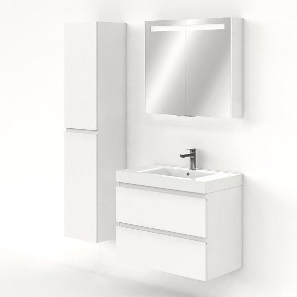 Greeploos badkamermeubel in de kleur wit mat is 80 cm breed. De wastafel is vervaardig in polystone en heeft de kleur wit. Dit badkamermeubel met deze wastafel is leverbaar tussen de 60 cm t/m 120 cm