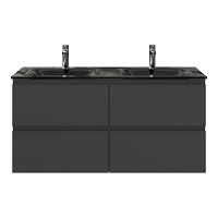 | Bellanti Gisella/Glass badmeubel 120x46 4 softclose laden antraciet mat greeploos glazen wastafel dubbel zwart met 2 kraangaten |