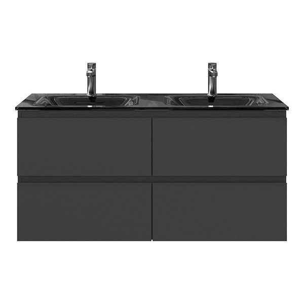 | | Bellanti Gisella/Glass badmeubel 120x46 4 softclose laden antraciet mat greeploos glazen wastafel dubbel zwart met 2 kraangaten |