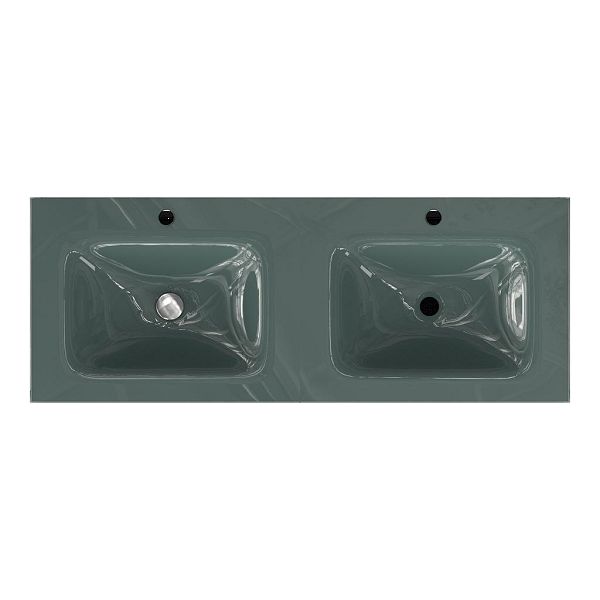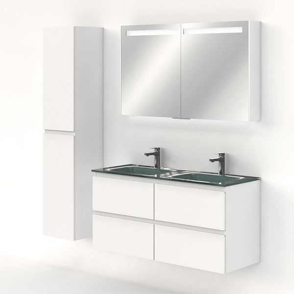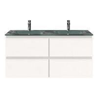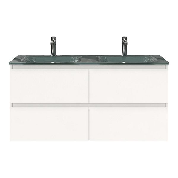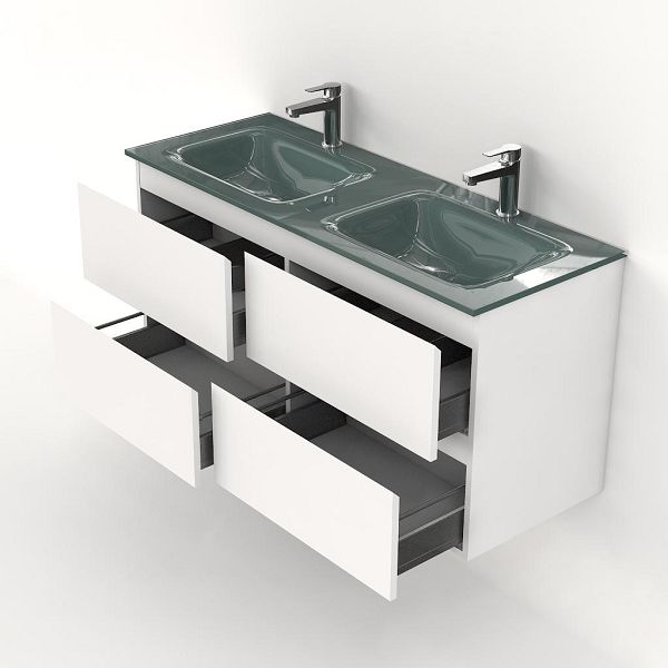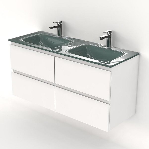 | Bellanti Gisella/Glass badmeubel 120x46 4 softclose laden wit mat greeploos glazen wastafel dubbel zilvergrijs met 2 kraangaten |