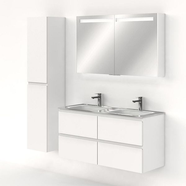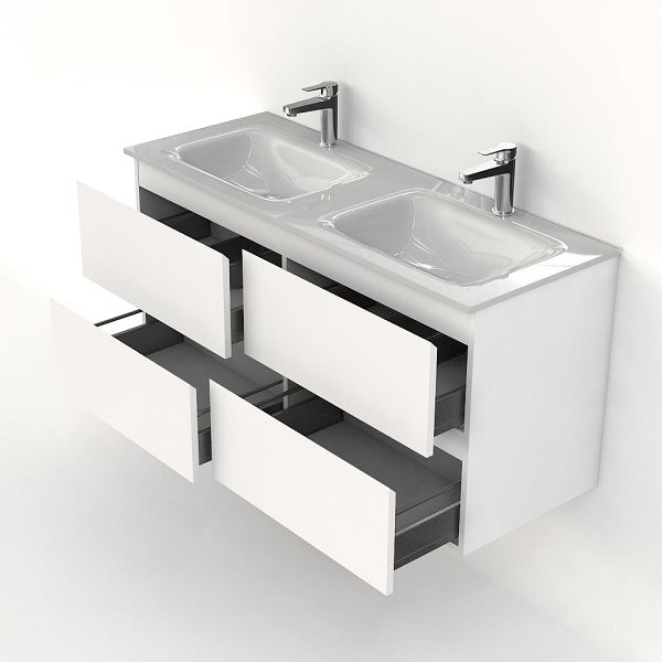 | Bellanti Gisella/Glass badmeubel 120x46 4 softclose laden wit mat greeploos glazen wastafel dubbel wit met 2 kraangaten |