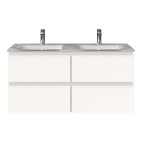 | | Bellanti Gisella/Glass badmeubel 120x46 4 softclose laden wit mat greeploos glazen wastafel dubbel wit met 2 kraangaten |