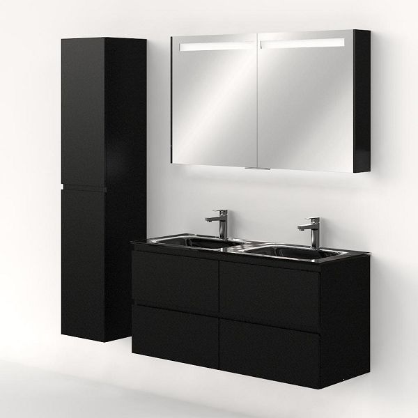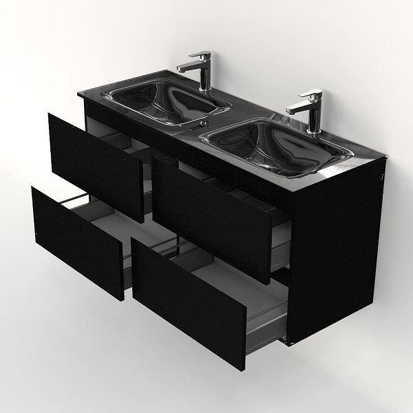 | | Bellanti Gisella/Glass badmeubel 120x46 4 softclose laden zwart mat greeploos glazen wastafel dubbel zwart met 2 kraangaten |