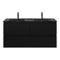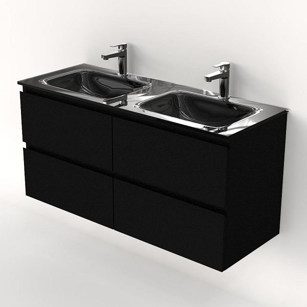 | Bellanti Gisella/Glass badmeubel 120x46 4 softclose laden zwart mat greeploos glazen wastafel dubbel zwart met 2 kraangaten |