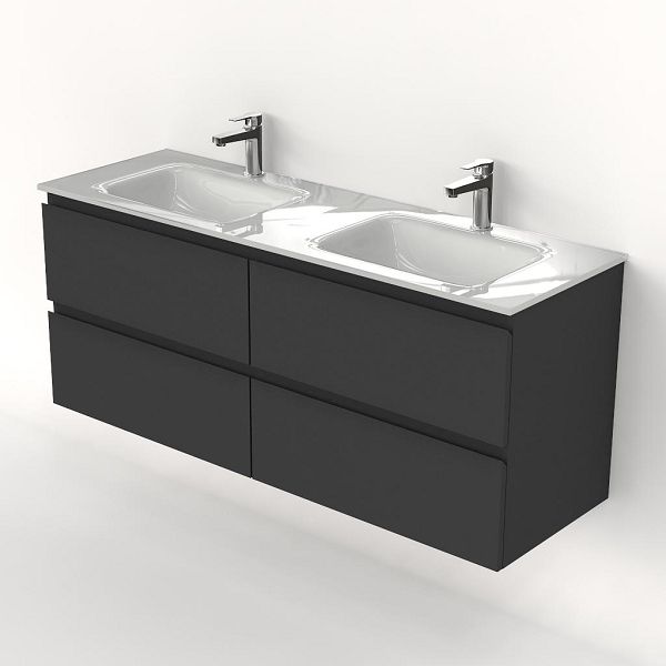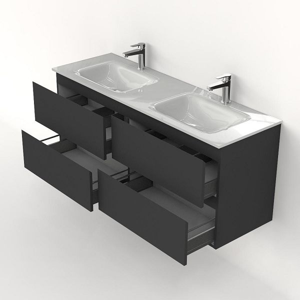 | Bellanti Gisella/Glass badmeubel 140x46 4 softclose laden antraciet mat greeploos glazen wastafel dubbel wit met 2 kraangaten |