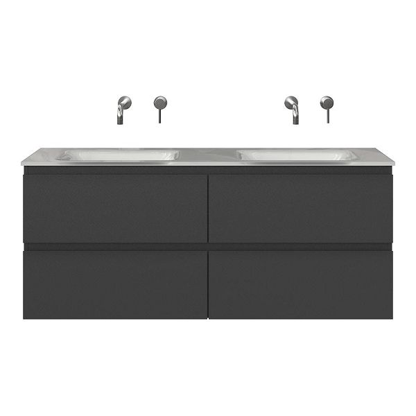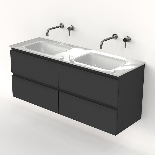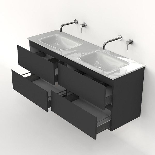 | | Bellanti Gisella/Glass badmeubel 140x46 4 softclose laden antraciet mat greeploos glazen wastafel dubbel wit zonder kraangaten |