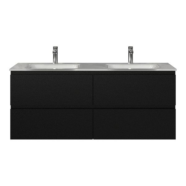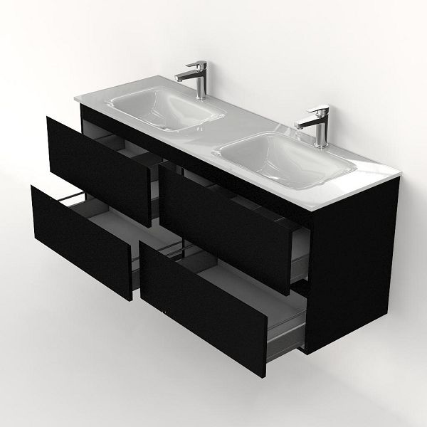 | | Bellanti Gisella/Glass badmeubel 140x46 4 softclose laden zwart mat greeploos glazen wastafel dubbel wit met 2 kraangaten |